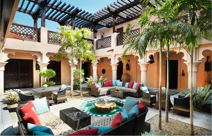 マディナ・ジュメイラの敷地内、入り口付近に位置するアラビアン・スタイルのホテルで、3つのホテルの中で一番お手ごろな価格で宿泊可能です。室内は、天然の漆黒木材が随所に使用され、アンティーク家具や調度品と共に重厚で異国情緒あふれる雰囲気を醸し出しています。