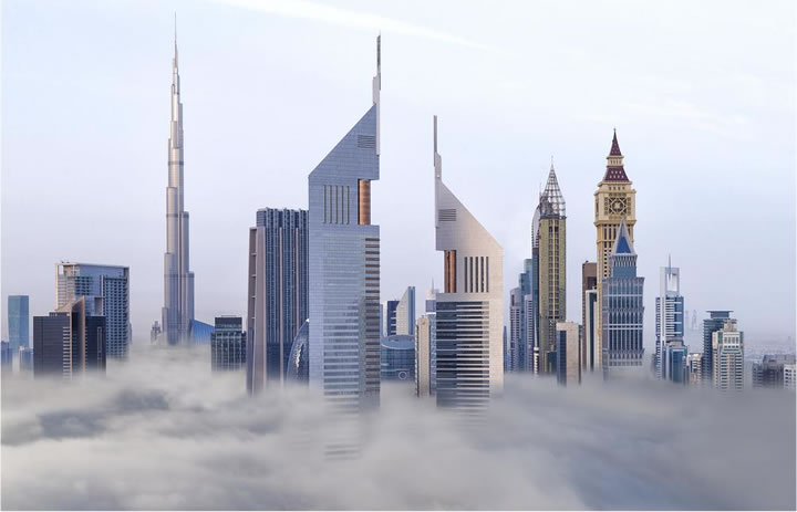 未来都市ドバイを彷彿とさせる摩天楼のツインタワー