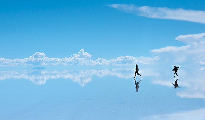 ウユニ塩原にうっすら水が張り、紺碧の空や流れる雲、満点の星空が映し出される“鏡”が出現します。湖面を歩くとどちらが空かわからなくなる錯覚に囚われる異次元の世界。移りゆく風景をいつまでも眺めていたい、世界中の旅人が憧れてやまない場所です。