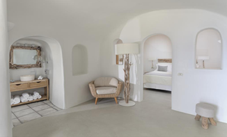 サントリーニ島らしい純白を基調とした洗練されたラグジュアリーホテルキリ二