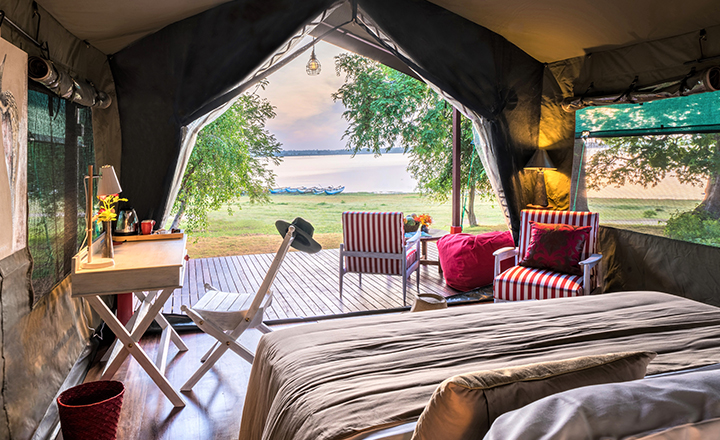 ヤーラ国立公園の魅力はサファリだけではありません。5つ星のホテルはもちろん、ヤーラ国立公園ならではの滞在ができるホテルもあります。その中でもイチオシはテント泊です。テントといってもグランピングのような設備のしっかりとしたテントのため快適に滞在できます。夜になると施設全体がライトアップされ、見上げると美しい星空が広がり、ロマンティックな雰囲気が広がります。