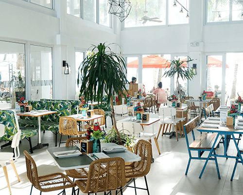 ボラカイの中心エリアから約1キロほど離れたエリアに位置します。目の前は美しい白砂のビーチ、ホテルのメインレストランはビーチから直接アクセスできます。