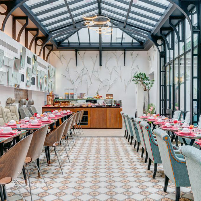 地下鉄12号線サンジョルジュ駅から徒歩約3分のところに位置するブティックホテル。クラシカルな印象の残る白い建物が目印です。カジュアルながらモダンな客室は壁紙に施された絵柄が可愛らしく、女子旅にぴったり。閑静としたエリアにありますが、レストランやショップもあり便利な立地で、オペラ座までも徒歩15分ほどの好アクセス。口コミサイトでも常に上位に入るほどの人気っぷりのホテルです。