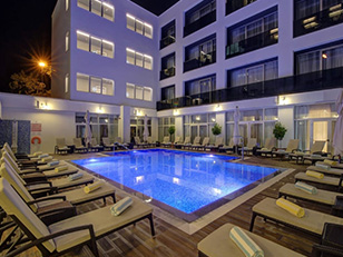 洗練されたデザインのホテルの中庭には宿泊者専用の屋外プールが設備されており、SPA施設も充実しております。